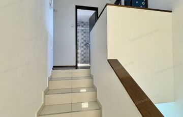 Az alsó szinten található az előszoba, zuhanyzó wc-vel, vendégszoba, konyha étkezővel, hatalmas kamra, nappali kapott helyet az alsó szinten. A nappaliból egy üvegajtón keresztül léphetünk ki a 18 nm-es teraszra, amely a hátsó kertre nyílik. A felső szinten 3 hálószoba, egy óriási méretű fürdőszoba zuhannyal és WC-vel kapott helyet. A SZOBÁK NAGYOK: 15nm, 16nm, 17nm, 18nm. A nappali – konyha – étkező összesen 48 nm. A padlástér ki lett alakítva, pakolható.