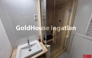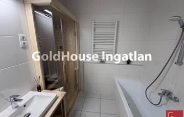 Fürdőszobák és szauna: A lakásban két ízlésesen burkolt, tágas fürdőszoba és egy külön WC található. A szaniterek Villeroy & Boch és Grohe márkájúak. Az egyik fürdő különlegessége egy prémium infraszauna, ami felmelegedés nélkül, azonnal használható. A mosó- és szárítógép az előszobában kapott helyet.
