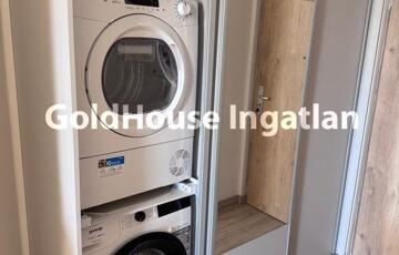 Terek és elrendezés: Az ingatlanban egy amerikai konyhás nappali található, melyet prémium EXTRAform sarokülőgarnitúra és fotel tesz otthonossá. A konyha a legkorszerűbb Gorenje gépekkel felszerelt (sütő, főzőlap, elszívó, mosogatógép, beépített mikró, nagy hűtő fagyasztóval). A három hálószobából az egyik saját, bejárható gardróbszobával rendelkezik.