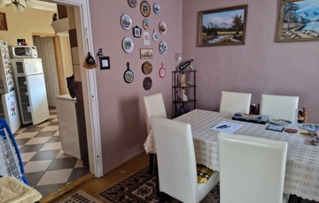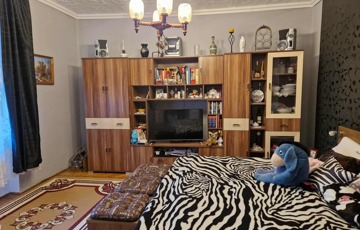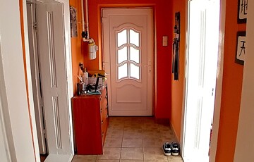 Helyiségek: előszoba, ebédlő (ami akár külön szobává is alakítható), konyha (beépített konyhabútorral), fürdőszoba-WC, spájz, 2 és fél szoba, padfeljáró (külön bejárattal), innen található meg a pincebejárat is.