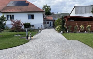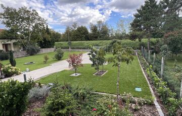 A 852 m2-es telek parkosított, automata öntözőrendszerrel, robot fűnyíróval ellátott, prémium anyagok felhasználásával, magas műszaki minőségben megépített térköves közlekedő részekkel rendelkezik gyalogos és autóforgalom részére egyaránt.