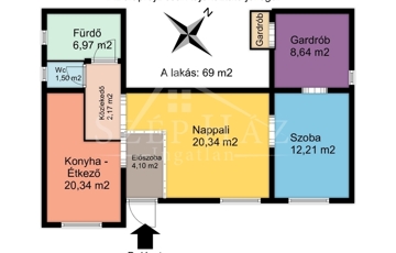 Alapterület: 60,36 m² +gardróbbal = 69 m2 + 200 m² kizárólagos kert/udvar