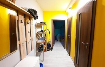 A szobákban és a közlekedőkben minőségi laminált parketta található a falak gletteltek, festettek.