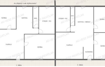 • Mindkét lakásban: amerikai konyhás nappali, 2 szoba, fürdőszoba WC-vel, spejz