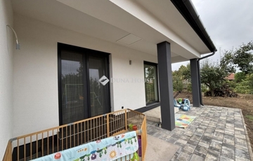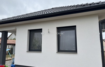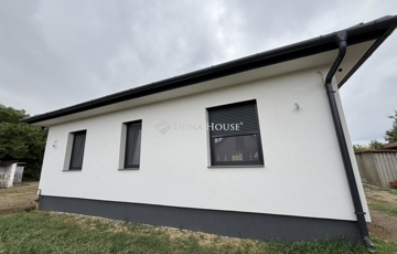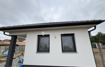 874 m²-es telken, (önálló helyrajzi számon nyilvántartott) 106,86 m² alapterületű, tégla fő- és válaszfalakkal épült, nappali + 3 szobás családi ház várja új tulajdonosát.Modern, okos családi ház eladó csendes környékenFőbb jellemzők:-Teljes körű LOXONE okosotthon rendszer: fűtés, redőnyök és riasztórendszer, amely szabadon bővíthető, és távolról (telefonról) is vezérelhető.-Energiatudatos működés: 3,4 kW napelem rendszer, kondenzációs gázkazán és szobánként külön szabályozható padlófűtés.-Klímakomfort: Daikin Comfora hűtő-fűtő klíma (3,5 kW) + előkészítés további egységhez (hálórész).-Biztonság: kültéri IP kamera (TP-Link, mobilról elérhető) és riasztórendszer.-Prémium nyílászárók: 3 rétegű, GEALAN S9000 ablakok, kívül-belül antracit színben, elektromos alumínium redőnyökkel és szúnyoghálóval.-Időtálló részletek: színezett alumínium ereszcsatorna, kívül-belül műkő párkányok.Belső kialakítás:-Teljesen gépesített IKEA konyha, és PAX gardróbszekrény.-Geberit dupla mosdós fürdőszoba szekrény fűthető Geberit Xeno tükörrel.-Geberit rimless fali WC-k.-Full Doors CPL fóliás ajtók tömör faforgács betéttel.-Bette 180x80 titánacél kád, Hansgrohe csaptelepek.Telek és környezet-Privát, nyeles telek, csendes elhelyezkedéssel, teljes nyugalmat biztosítva.-30 m²-es térkövezett terasz.-Fúrt kút és kerti csap.-6 m²-es kerti tároló pincével.Az udvar végső kialakítása az új tulajdonosra vár.Ez az ingatlan a modern technológiát, az energiatakarékosságot és a kényelmet ötvözi ideális választás, ha biztonságos, jól felszerelt, trendi, okos otthont keresel nyugodt környezetben.