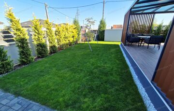Telek: 395 m², gyönyörűen parkosított kert automata öntözőrendszerrel