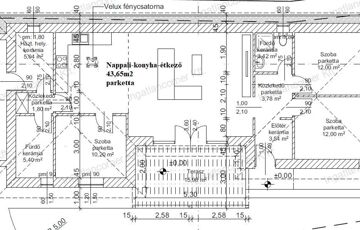Elosztás: nappali + 3 háló, 2 fürdőszoba, külön háztartási helyiség