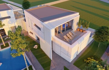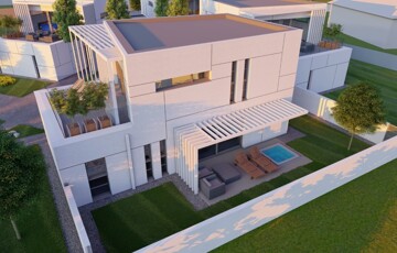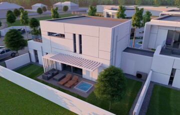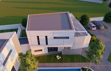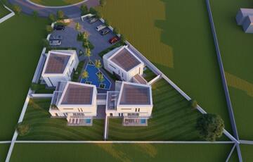 Kaposváron a Kisgát városrészben, a Reményik Sándor utcában, modern környezetben lévő, új építésű, exkluzív - magas minőségben kivitelezett, korszerű építőanyagokból épülő 4 lakásos Villaparkban - 125 m2-es kétszintes családi ház eladó. A lakóház földszintjén (76,8 m2) előszoba, nagy üvegportállal rendelkező tágas nappali - étkező, konyha, 1 szoba, gardrób, fürdőszoba-wc, további wc, gépészeti - tároló helyiségek kerültek kialakításra, továbbá tartozik hozzá egy 20,70 m2-es fedett, belső udvar felé néző terasz is - süllyesztett jakuzzival. Az épület felső szintjén (48,20 m2) előszoba, 2 szoba, fürdőszoba-wc és háztartási helyiségek, illetve 20,77 m2-es nyitott terasz vannak. A korszerű, modern energetikájú - alacsony rezsivel rendelkező - épület villany ellátása H tarifával megoldott, a fűtése LG típusú hőszivattyúval kerül kivitelezésre, továbbá fan-coil rendszer biztosítja a helyiségek fűtését és hűtését. Távirányítással működő zsaluziák lesznek felszerelve, illetve prémium minőségű szaniterek és szerelvények, illetve csapok - Wellis, illetve HansGrohe - kerülnek beépítésre. Az igényesen kialakított udvaron tartozik a lakáshoz 1 db fedett gépkocsibeálló és további 1 db kocsibeálló. Az épület teljes kivitelezését - és várható 2026. III. negyedévben történő átadását - követően a - komoly referenciákkal rendelkező - beruházó végzi majd a Villapark közös költséggel járó üzemeltetését is. A lakáshoz tartozó önálló udvar mérete: 75,55 m2