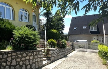 Zala vármegye, Vonyarcvashegy 148m2-es panorámás családi ház eladó. A kedvelt Balaton-parti település csendes utcájában található 3 szintes ingatlan garázsszintjén a gépjárműbeállón kívül konyhasarok tárolóval és egy teraszos garzon (hálószoba, fürdő), a fogadószinten teraszos konyha étkezővel és tárolóval, nappali és szélfogó, míg a tetőtérben további két szoba, melyből az egyik erkélyes, közlekedő és fürdőszoba került kialakításra. A szigetelt ház melegéről gázkazán és cserépkályha gondoskodik. A 2003-ban épült, közel 1500m2-es telken elhelyezkedő tehermentes, légkondicionálóval felszerelt és bútorozott családi ház alkalmas lehet több generáció együttélésére, vagy befektetésnek egyaránt. Az ingatlan megvásárlásához – igény esetén – díjmentesen finanszírozási megoldásokkal szolgálok.