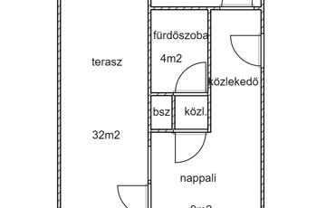 - a lakótér hasznos alapterülete: 39m2. A terasz: 32m2.