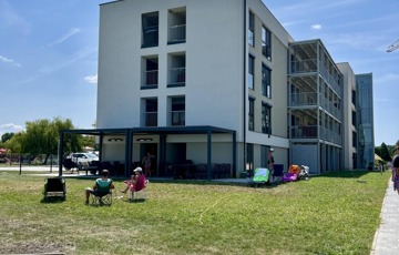 - az 58 lakásos, liftes, saját balatoni partszakasszal rendelkező, szigetelt társasház zárt udvarán gépjármű beálló (3MFt), vagy garázs (15MFt) is vásárolható a lakáshoz.