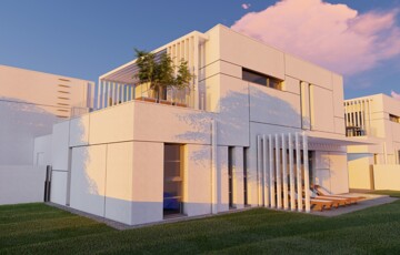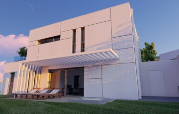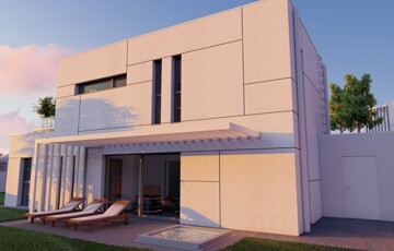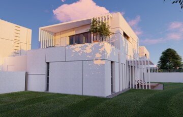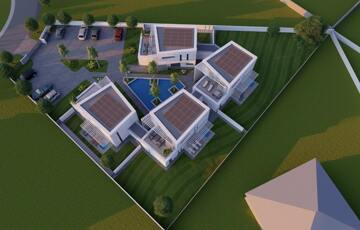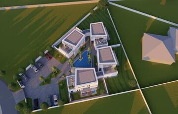 Kaposváron a Kisgát városrészben, a Reményik Sándor utcában, modern környezetben lévő, új építésű, exkluzív - magas minőségben kivitelezett, korszerű építőanyagokból épülő 4-lakásos Villaparkban - 123,92 m2-es kétszintes családi ház eladó. A lakóház földszintjén (75,72 m2) előszoba, nagy üvegportállal rendelkező tágas nappali - étkező, konyha, 1 szoba, gardrób, fürdőszoba-wc, további wc, gépészeti - tároló helyiségek kerültek kialakításra, továbbá tartozik hozzá egy 20,70 m2-es fedett, belső udvar felé néző terasz is - süllyesztett jakuzzival. Az épület felső szintjén (48,20 m2) előszoba, 2 szoba, fürdőszoba-wc és háztartási helyiségek, illetve 20,77 m2-es nyitott terasz vannak. A korszerű, modern energetikájú - alacsony rezsivel rendelkező - épület villany ellátása H tarifával megoldott, a fűtése LG típusú hőszivattyúval kerül kivitelezésre, továbbá fan-coil rendszer biztosítja a helyiségek fűtését és hűtését. Távirányítással működő zsaluziák lesznek felszerelve, illetve prémium minőségű szaniterek és szerelvények, illetve csapok - Wellis, illetve HansGrohe - kerülnek beépítésre. Az igényesen kialakított udvaron tartozik a lakáshoz 1 db fedett gépkocsibeálló és további 1 db kocsibeálló. Az épület teljes kivitelezését - és várható 2026. III. negyedévben történő átadását - követően a - komoly referenciákkal rendelkező - beruházó végzi majd a Villapark közös költséggel járó üzemeltetését is. A lakáshoz tartozó önálló udvar mérete: 250,16 m2