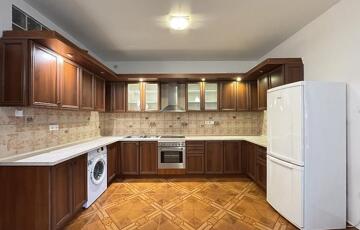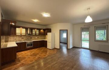 Nem bútorozott, de gépesített: beépített sütő és főzőlap, valamint a hűtő és mosógép.