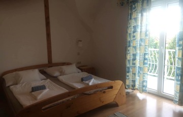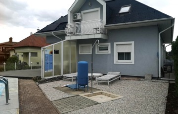 Zala vármegye, Gyenesdiás 220 m2-es, kétszintes családi ház eladó. A kedvelt Balaton-parti település csendes utcájában, a strandoktól 10 percnyi sétatávolságban található, a 2000-es évek elején épült, majd 2022-ben felújított ingatlan fogadószintjén előtér, illemhelyiség, konyha, nappali, étkező, 2 db hálószoba (fürdőszobával), előtér, terasz, 1 személyautó számára garázs elektromos garázsajtóval és mosókonyha, míg az emeleten 3 erkélyes lakrész 2-2 hálószobával és saját fürdőszobával került kialakításra. A ház melegéről gázkazán és hűtő-fűtő klímák gondoskodnak. Az 1100m2-es telken elhelyezkedő családi ház udvarán csempézett úszómedence (6X10X1,5m), fedett kerti kiülő, játszótér, öntözőrendszer szolgálja az ott lakók nyugalmát. A gépjárművek tárolására a garázson kívül térkövezett udvari beállók szolgálnak. A tehermentes ingatlanon szaldós elszámolású napelem rendszer kiépítése is megtörtént. Az ingatlan alkalmas lehet több generáció együttélésére, vagy befektetésnek egyaránt. A családi ház megvásárlásához – igény esetén – díjmentesen finanszírozási megoldásokkal szolgálunk.