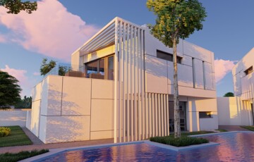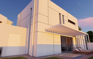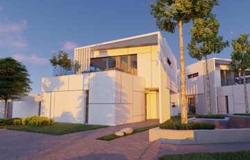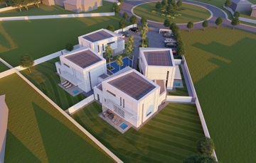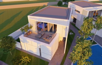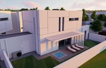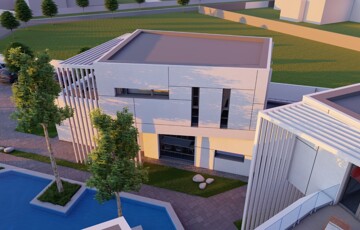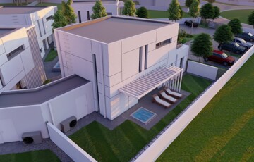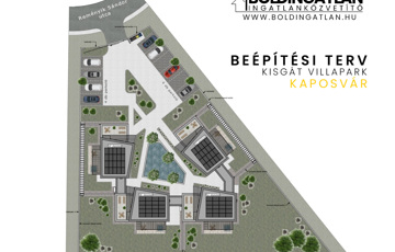 Kaposváron a Kisgát városrészben, a Reményik Sándor utcában, modern környezetben lévő, új építésű, exkluzív - magas minőségben kivitelezett, korszerű építőanyagokból épülő 4-lakásos Villaparkban - 125,16 m2-es kétszintes családi ház eladó. A lakóház földszintjén (76,96 m2) előszoba, nagy üvegportállal rendelkező tágas nappali - étkező, konyha, 1 szoba, gardrób, fürdőszoba-wc, további wc, gépészeti - tároló helyiségek kerültek kialakításra, továbbá tartozik hozzá egy 20,7 m2-es fedett, belső udvar felé néző 41,47 m2-es terasz is - süllyesztett jakuzzival. Az épület felső szintjén (48,2 m2) előszoba, 2 szoba, fürdőszoba-wc és háztartási helyiségek, illetve 20,77 m2-es nyitott terasz vannak. A korszerű, modern energetikájú - alacsony rezsivel rendelkező - épület villany ellátása H tarifával megoldott, a fűtése LG típusú hőszivattyúval kerül kivitelezésre, továbbá fan-coil rendszer biztosítja a helyiségek fűtését és hűtését. Távirányítással működő zsaluziák lesznek felszerelve, illetve prémium minőségű szaniterek és szerelvények, illetve csapok - Wellis, illetve HansGrohe - kerülnek beépítésre. Az igényesen kialakított udvaron tartozik a lakáshoz 1 db fedett gépkocsibeálló és további 1 db kocsibeálló. Az épület teljes kivitelezését - és várható 2026. III. negyedévben történő átadását - követően a - komoly referenciákkal rendelkező - beruházó végzi majd a Villapark közös költséggel járó üzemeltetését is. A lakáshoz tartozó önálló udvar mérete: 75,55 m2
