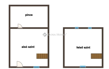 A kisházba egy csodálatos panorámával rendelkező fedett teraszról lehet belépni, az alsó részén egy konyhás nappali található, innen kis pince nyílik; a felső részén egy szoba van, mely akár ketté is osztható.