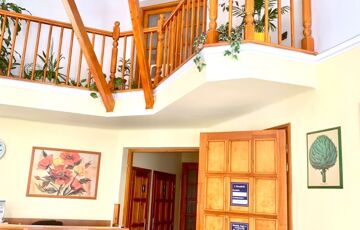 A ház belső elrendezése egyedi: a tágas , hatalmas nappali mellett négy szoba, két fürdőszoba, 3 különálló wc , valamint különálló zuhanyzók , is megtalálhatók.