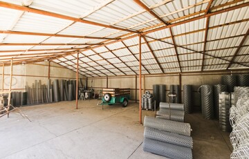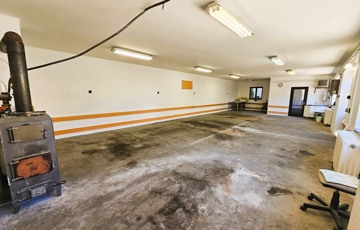 A fűtés vegyestüzelésű kazánnal megoldott. Az épületben egy tágas, 95 m²-es betonaljzatú műhely helyezkedik el irodarész kialakítással, valamint egy 25 m²-es szerelőaknás garázs. Az udvaron további hasznos építmények találhatók: egy 106 m²-es fedett tároló, egy kisebb, 10 m²-es tároló, valamint a telek végében egy 6x5 méteres, trapézlemezből készült ól, tároló.