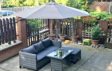 - hangulatos, beépített terasz