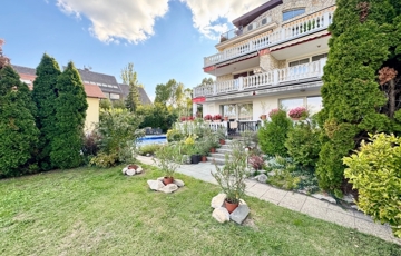 A társasház kertje igényesen parkosított, nagy területen helyezkedik el, ahol egy nagyméretű ÚSZÓMEDENCE, valamint egy SZAUNA is kialakításra került. A kertet kertész gondozza.