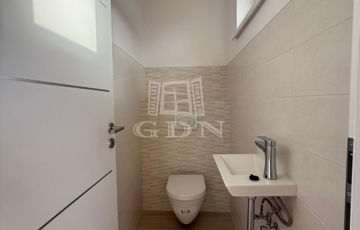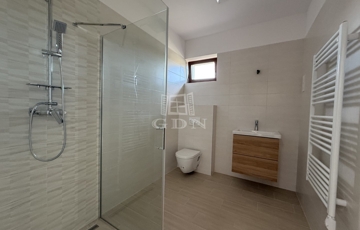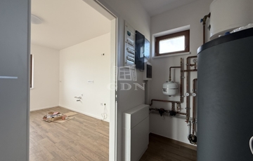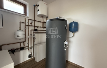 A nyílászárók műanyagból készültek,3 rétegű hőszigetelt üvegezéssel, rejtett redőny tokkal. A burkolatok magas minőségű járólap, illetve laminált padló. Fűtése-melegvíz: hőszivattyú megoldással, padlófűtéssel.