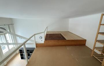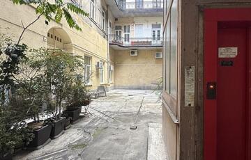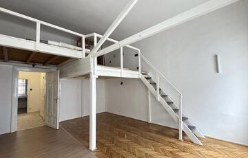 Kiadó egy világos, délnyugati tájolású, galériás egyszobás lakás a VI. kerületben, a Nagymező utca 37–39. szám alatti liftes téglaépület második emeletén.