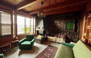 ✅ A felső szint könnyűszerkezetes, 10 cm-es szigeteléssel, így télen is lakható. Ezen a szinten kapott helyet egy hangulatos kandallóval a nappali, illetve a konyha, fürdő és hálószoba.