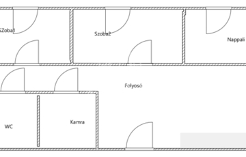 Helyiségek: 1 szoba + 2 félszoba + étkezős konyha + fürdő + külön WC +spájz