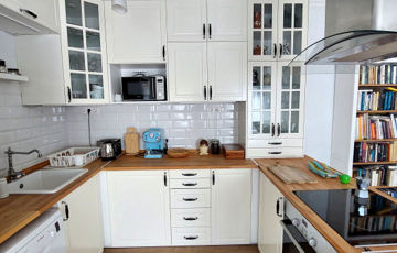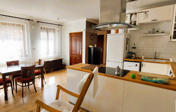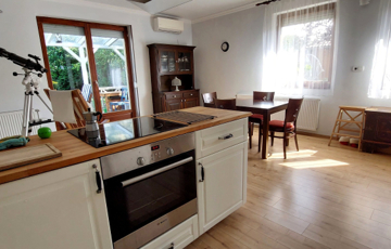 -Konyha: 2019-ben beépített IKEÁ-s, gépesített konyhabútor (hőlégkeverős sütő, kerámialapos főzőlap, elszívó)