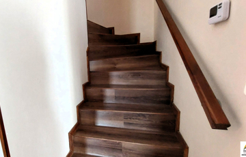 Lépcső: vasbeton alap, esztétikus fa burkolattal