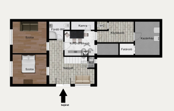 • Tágas, élhető belső tér: nappali + 3 hálószoba, konyha-étkező, fürdőszoba-WC és további 2 különálló mellékhelyiség.