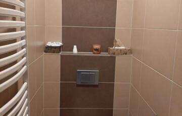 Az előtérből felfelé lépcső vezet a tetőtéri szintre, ahol a TÁGAS és IMPOZÁNS fürdőszoba és egy további nagyszoba lett kialakítva, mely akár dolgozószobának is kiválóan alkalmas lehet.