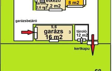 Az utcáról külön gyalogos és külön gépkocsibejáró is vezet a telekre, saját 16 m2-es garázs van a telken.