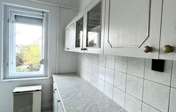 A lakás elosztása egyedi, fekvése észak–déli, így minden helyiség világos és napfényes. A szobákban jó állapotú tölgyfa parketta található, mindenhol redőny növeli a kényelmet, a dupla fa ablakok pedig télen jól tartják a meleget, nyáron pedig kellemes klímát biztosítanak. A konyha kényelmes méretű, a hozzá tartozó kamra praktikus megoldást kínál. A fürdőszoba kádas, a WC külön helyiségben található, ami jelentős előnyt jelent a mindennapokban. A nappalihoz egy kisebb, 2 m²-es terasz kapcsolódik, amely bár nem nagy, mégis hangulatos pihenési lehetőséget nyújt.
