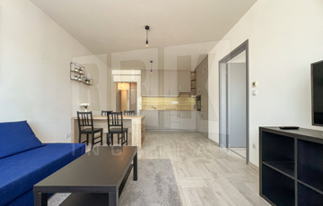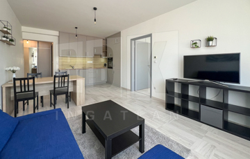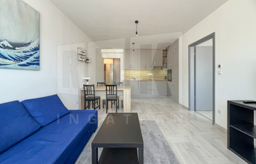 A lakás egy nagyon hangulatos, ragyogóan napfényes, 45 m2 alapterületű okosotthon, praktikus, beépített szekrényekkel, modern bútorokkal berendezve. Konyhája minőségi konyhagépekkel (beépített főzőlap, sütő, páraelszívó, mosogatógép, hűtő és fagyasztószekrény, mosógép, mikrohullámú sütő) és mosógéppel felszerelt.