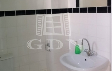 A fürdőszoba a nappali és hálószoba között található, a bejárat mellett külön háztartási helyiség WC-vel és kézmosóval. Fűtés: cirkó kazán.