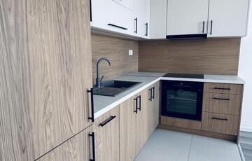 -modern, gépesített konyha (sütő, főzőlap, mosogatógép, mosógép)