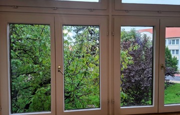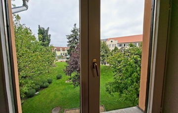A lakás D-DNy-i fekvésű, frissen felújított, parkra néző nagy ablakokkal, az első emeleten található.
