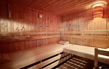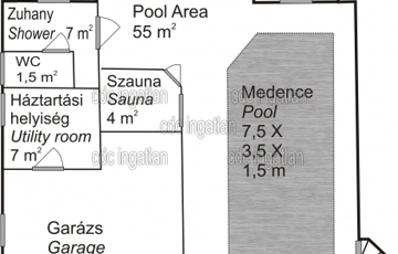 A 3 szintes épületben 5 külön nyíló szoba, 4 fürdőszoba, szauna, úszómedence és elektromos ajtóval nyíló kétállásos garázs található.