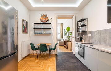 Budapest belvárosának egyik legkedveltebb utcájában, a VI. kerületi Ó utcában, eladóvá vált egy 73 négyzetméteres, 1. emeleti, kiváló állapotú lakás, amely nemcsak elhelyezkedésével, hanem elrendezésével is igazán különleges. Az ingatlan 2 tágas, világos szobával rendelkezik, amelyek egybe és külön is nyílóak – ezáltal tökéletesen alkalmazkodnak a különböző élethelyzetekhez, legyen szó otthonról, irodáról vagy vendégfogadásról. Továbbá 2 külön fürdőszoba szolgálja a lakók kényelmét, ami igazán ritka és praktikus megoldás. A lakás újszerű állapotban van, esztétikailag és műszakilag is kifogástalan. Modern burkolatok, minőségi nyílászárók, korszerű fűtésrendszer és kellemes, világos belső terek jellemzik. Az adatok tájékoztató jellegű.