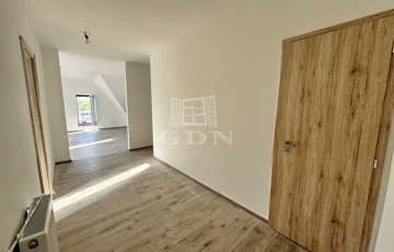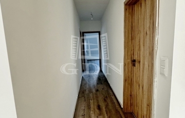 A 120 nm-es lakás egy újépítésű, háromszintes társasház 2. emeletén található, és új lakóját várja. Belépve tágas előtér fogad, innen nyílik a külön WC és az egyik hálószoba, szemben pedig a világos, amerikai konyhás nappali. A közlekedőből jobbra haladva érjük el a fürdőszobát és a további két hálószobát. A fürdőt járólap, a többi helyiséget parketta borítja.