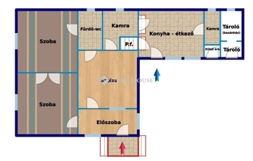 Lakótér: 95 m² – 3 szoba, tágas konyha-étkező