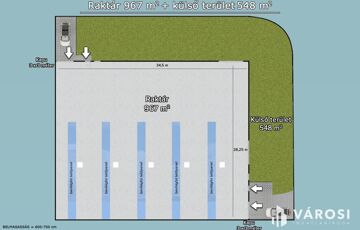 A raktárhoz tartozik az épület előtt található 548 m2 terület használati joga, illetve minden csarnokhoz jár parkolóhely is.