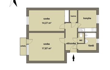 Helyiséglista: 2 szoba, konyha-étkező, kamra, fürdőszoba, WC, előszoba, erkély, pince