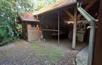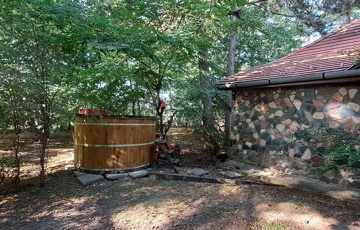 A telken található egy faház, mely kb. 14 m2, belül teljesen lambériázott, akár szauna is kialakítható benne, ezen kívül egy fával fűthető DÉZSA FÜRDŐ.