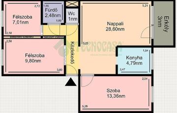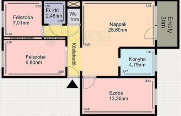 Az ingatlan könnyedén 3 szobássá, vagy amerikai konyhássá alakítható.