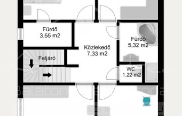 Emelet: 4 db szoba, 1 nagyobb fürdő káddal, tusolóval, 1 külön toalett, 1 közlekedő.
