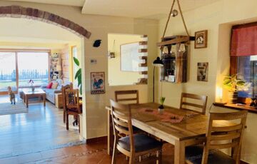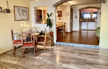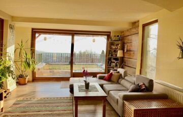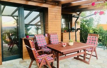There are three apartments in the condominium, we are in the middle, the entrances are completely separated. When we moved here in 2019, we had the house insulated (12 cm) and plastered from the outside, the terraces were covered with wood and a weatherproof polycarbonate roof, and the floor covering was replaced. All windows (double-glazed, insulated) and doors are made of wood.