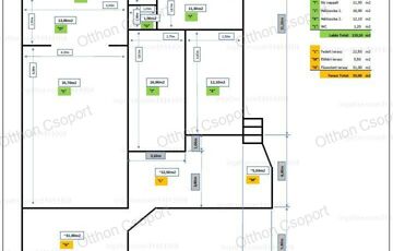 A lakás 120 nm plusz 60 nm terasz, ebből az egyik 30 nm füvesített, zöld terasz, kiépített öntözőrendszerrel, kerti csappal.