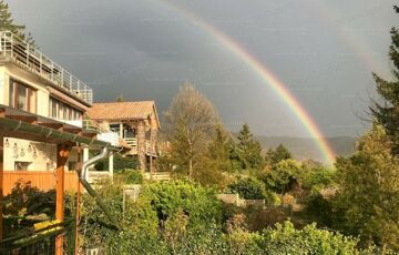 From autumn to spring, we can enjoy wonderful sunsets from the terrace and the living room. You can put a jacuzzi on the grassy terrace and we are already in a wellness hotel in our own home.